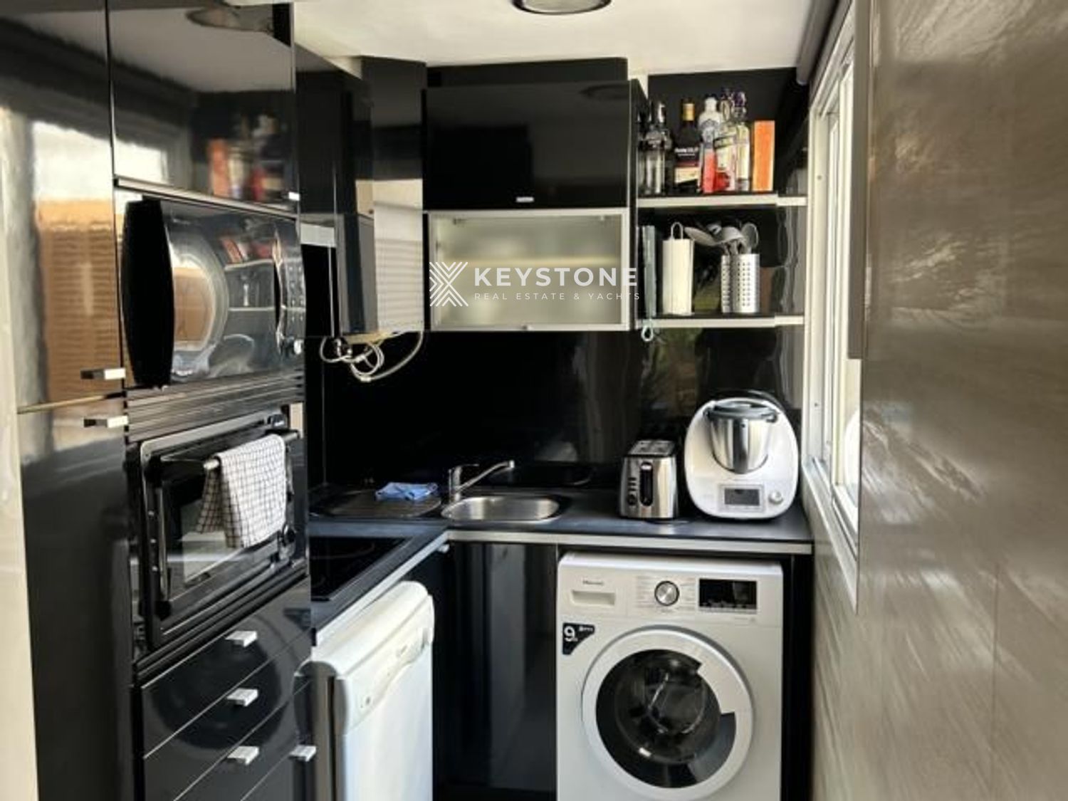 Located on the second floor, the property has been completely refurbished with high-quality materials and a contemporary style that highlights natural light and functionality. The open-plan living and dining area creates a warm, inviting atmosphere, enhanced by large windows that fill the apartment with sunlight.