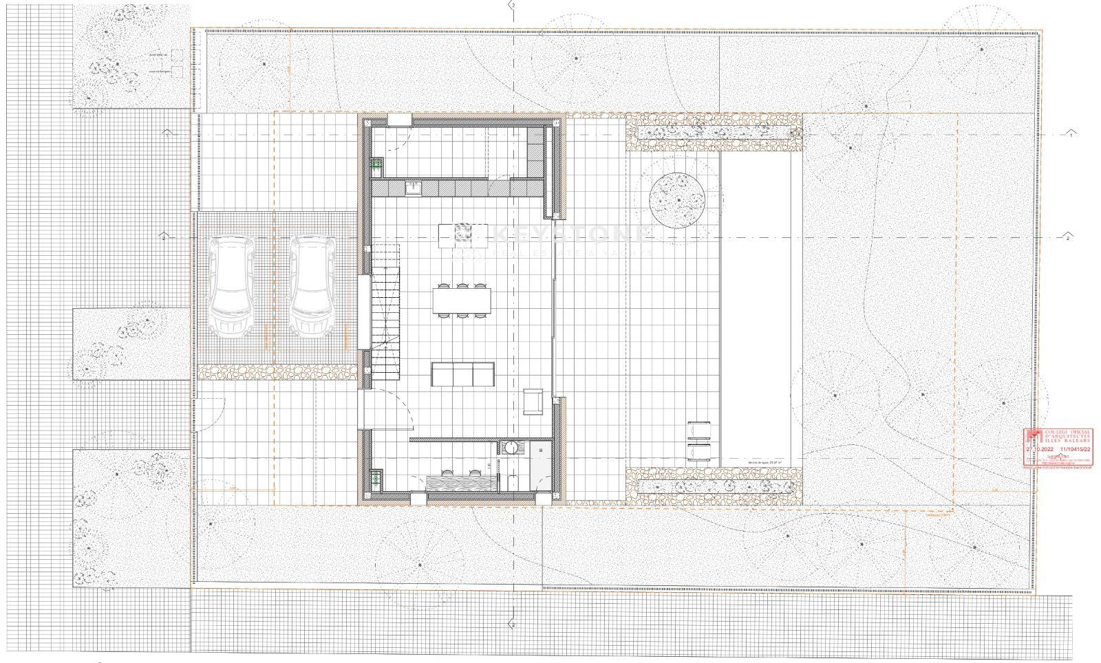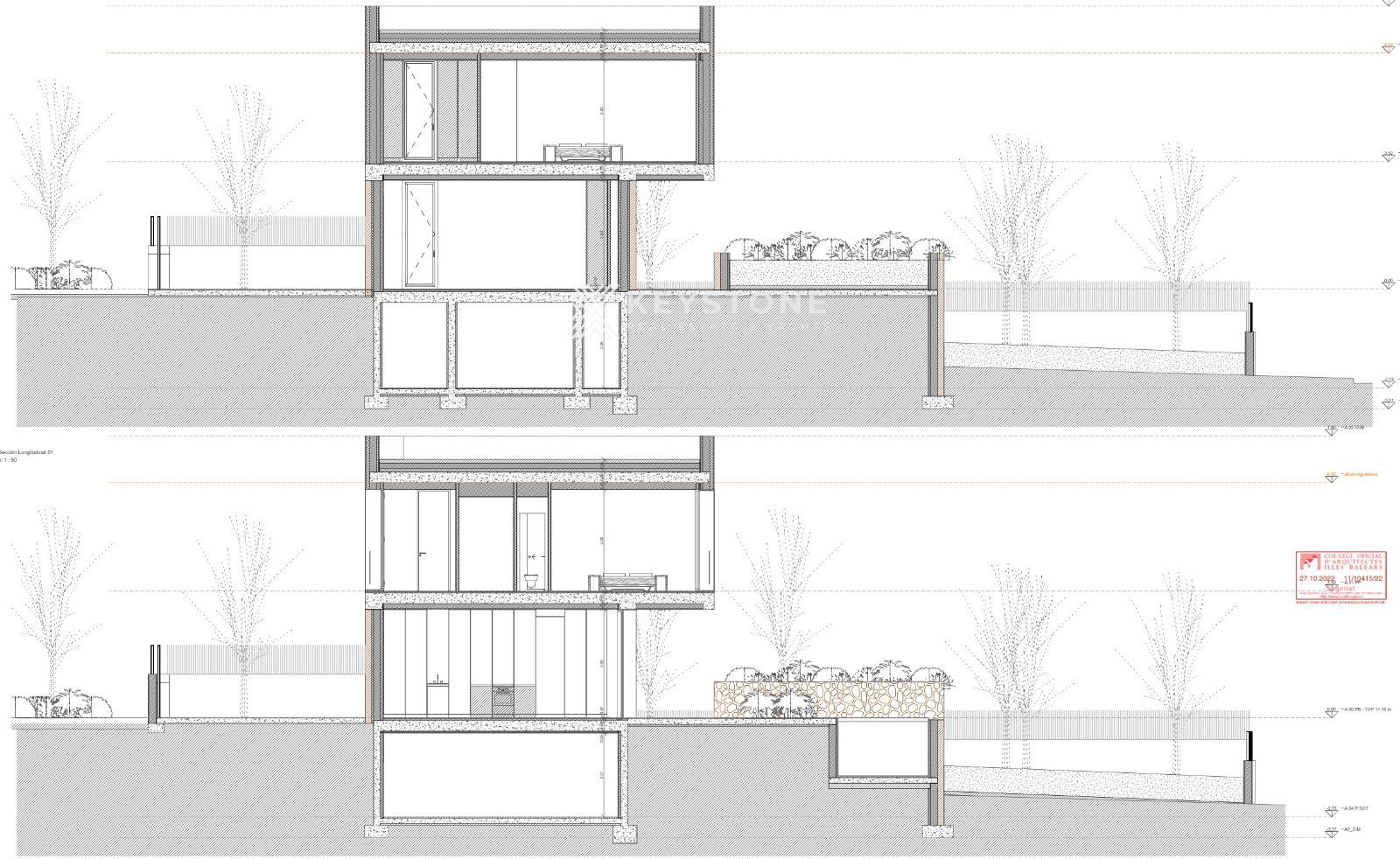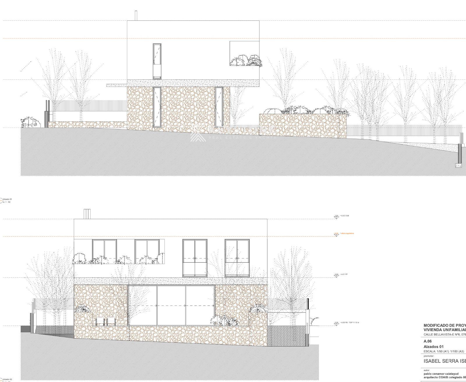 For sale: plot with an approved project to immediately build a spectacular luxury villa in Ses Cadenes, Palma de Mallorca. The contemporary design maximizes space and natural light with expansive glass walls that seamlessly connect the interior and exterior.