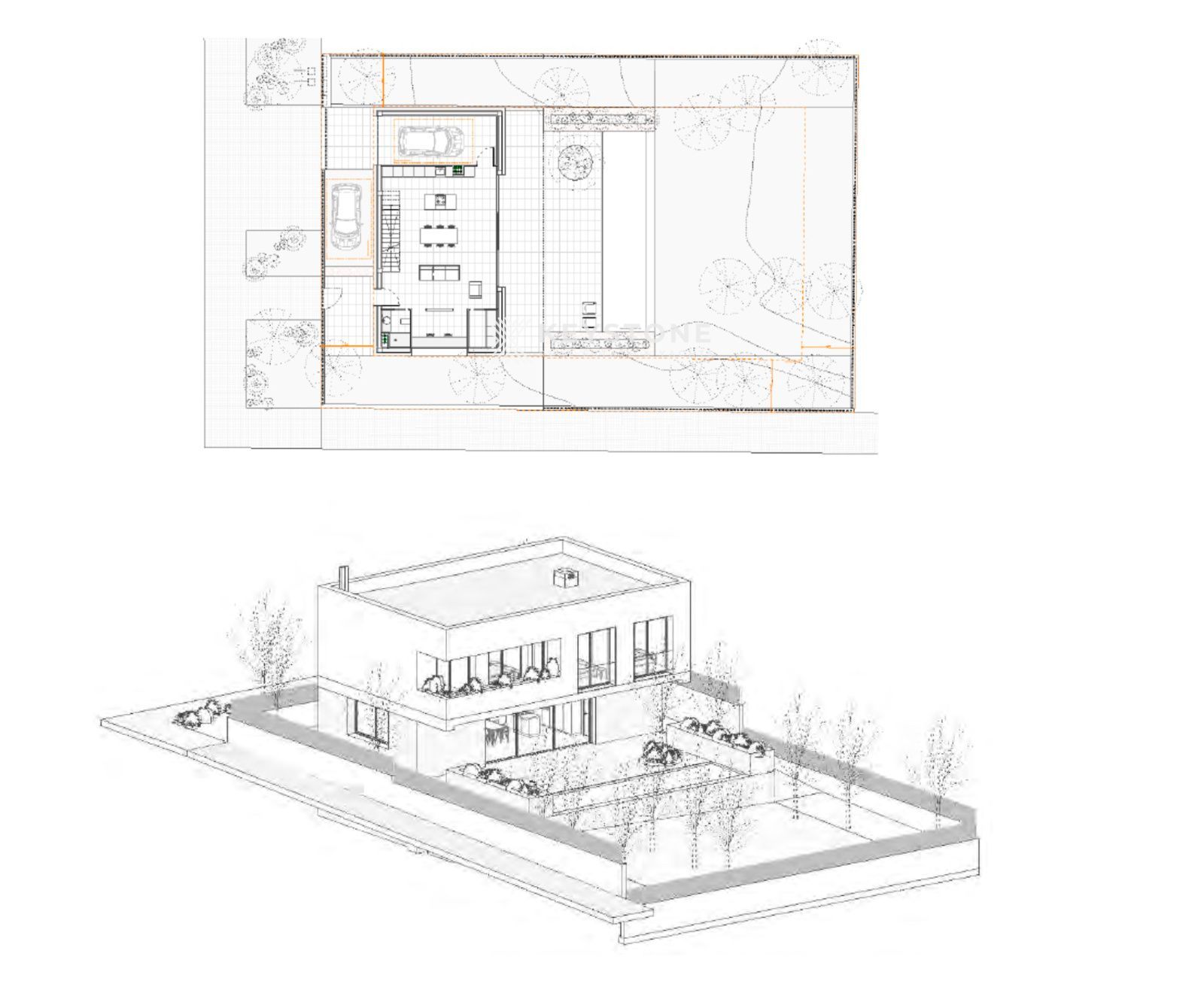 In the basement, the project includes a heated indoor pool and a private gym, creating an exclusive wellness area for maximum comfort. The project also offers a private garage and landscaped gardens.