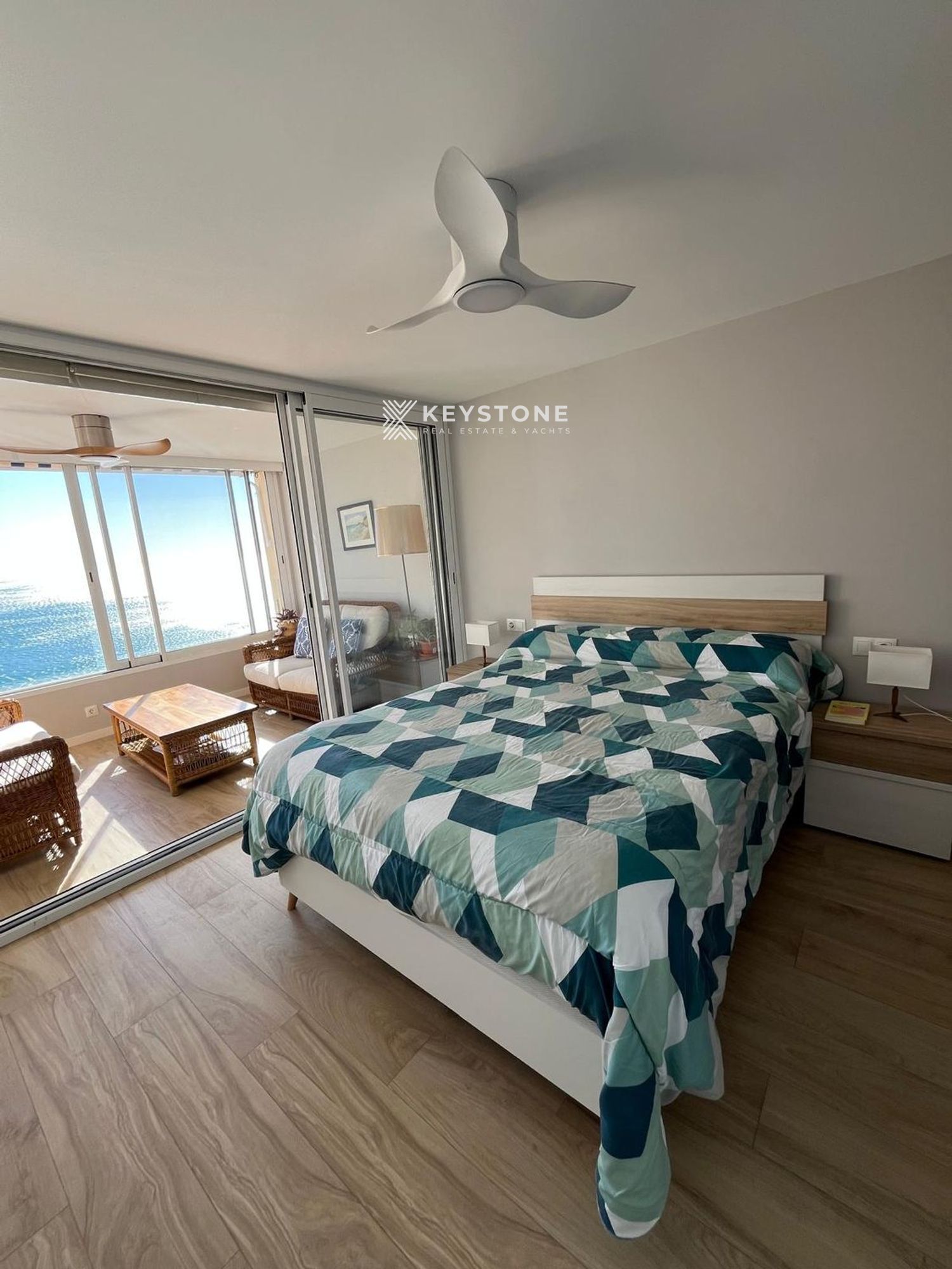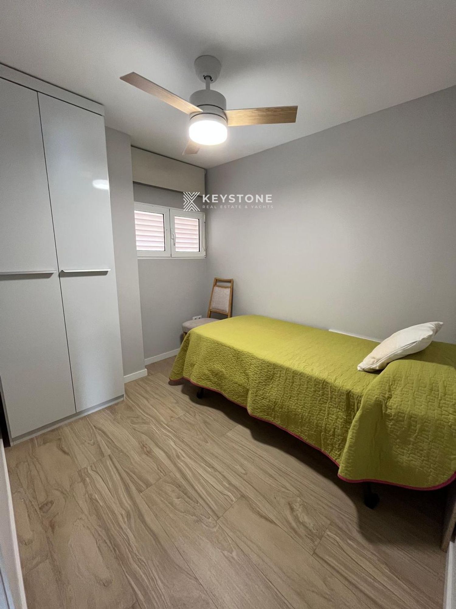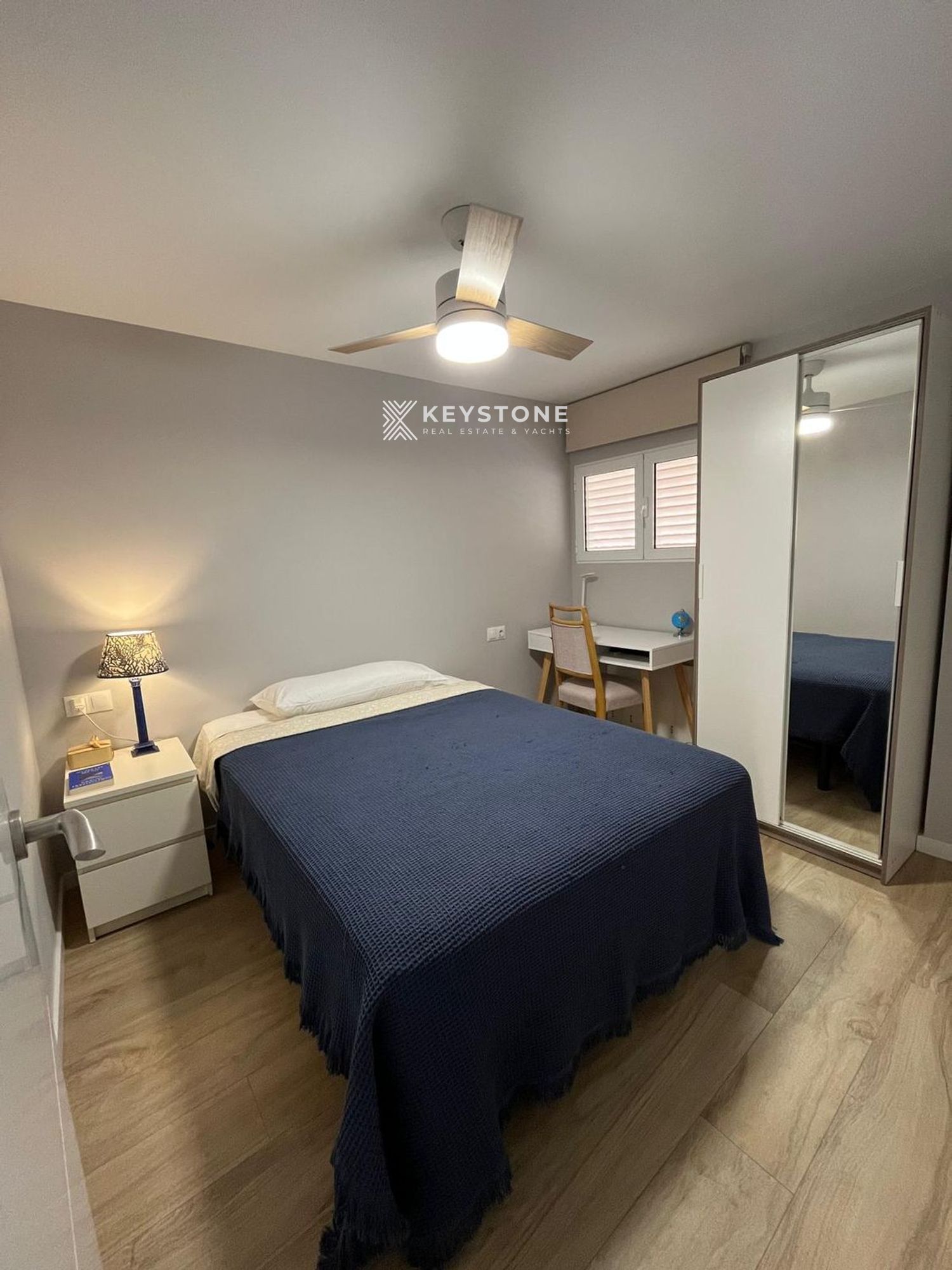 La vivienda cuenta con 100 m² construidos y 98 m² útiles, distribuidos en tres habitaciones, dos baños completos, dos cocinas totalmente equipadas y un amplio salón muy luminoso gracias a su orientación sur y altura. El apartamento ha sido renovado, se alquila amueblado y dispone de armarios empotrados, ventiladores de techo en todas las estancias, aire acondicionado, internet y televisión. La cocina está equipada con electrodomésticos de alta gama, incluyendo lavadora, lavavajillas, horno y microondas. El edificio dispone de ascensor y la propiedad incluye plaza de garaje con espacio para coche y motocicleta. Ubicación inmejorable, con parada de autobús en la puerta y TRAM a solo 7 minutos caminando. Ideal para parejas o familias que buscan confort, vistas al mar y una experiencia residencial exclusiva para larga temporada.