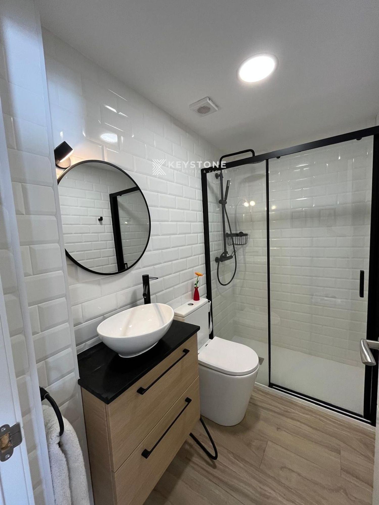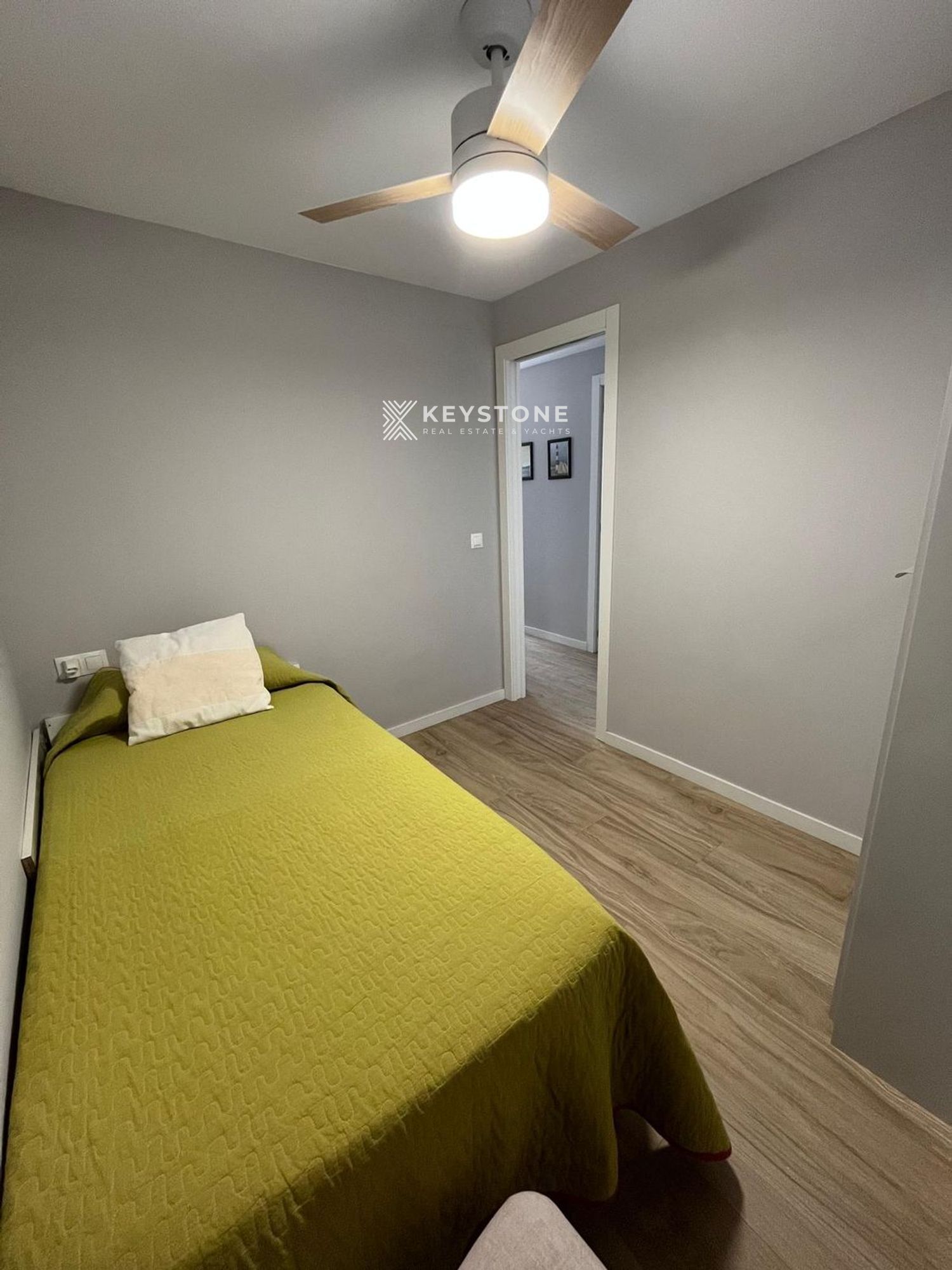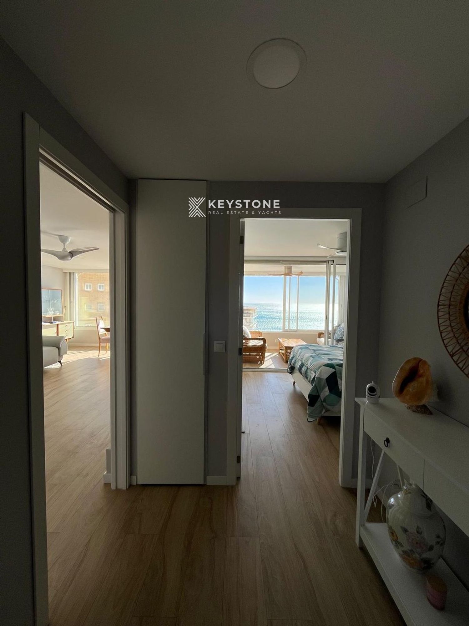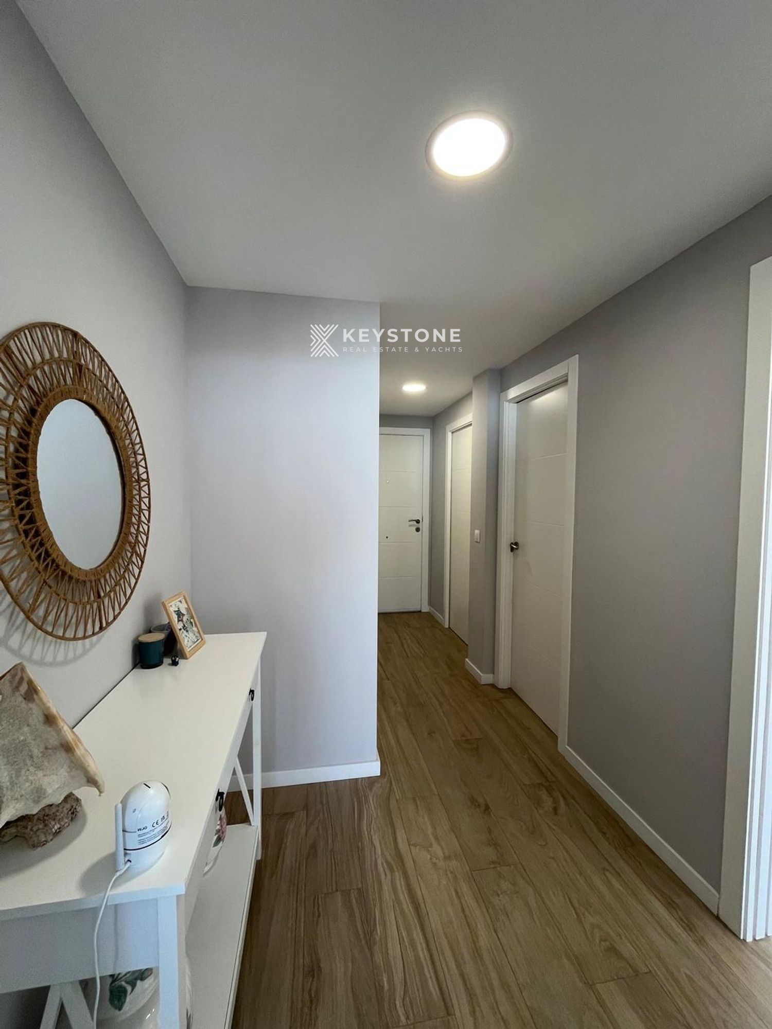 La vivienda cuenta con 100 m² construidos y 98 m² útiles, distribuidos en tres habitaciones, dos baños completos, dos cocinas totalmente equipadas y un amplio salón muy luminoso gracias a su orientación sur y altura. El apartamento ha sido renovado, se alquila amueblado y dispone de armarios empotrados, ventiladores de techo en todas las estancias, aire acondicionado, internet y televisión. La cocina está equipada con electrodomésticos de alta gama, incluyendo lavadora, lavavajillas, horno y microondas. El edificio dispone de ascensor y la propiedad incluye plaza de garaje con espacio para coche y motocicleta. Ubicación inmejorable, con parada de autobús en la puerta y TRAM a solo 7 minutos caminando. Ideal para parejas o familias que buscan confort, vistas al mar y una experiencia residencial exclusiva para larga temporada.