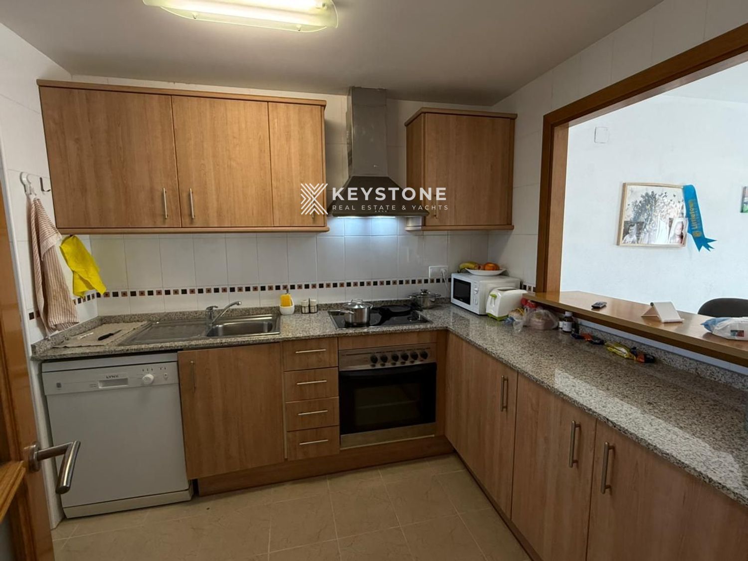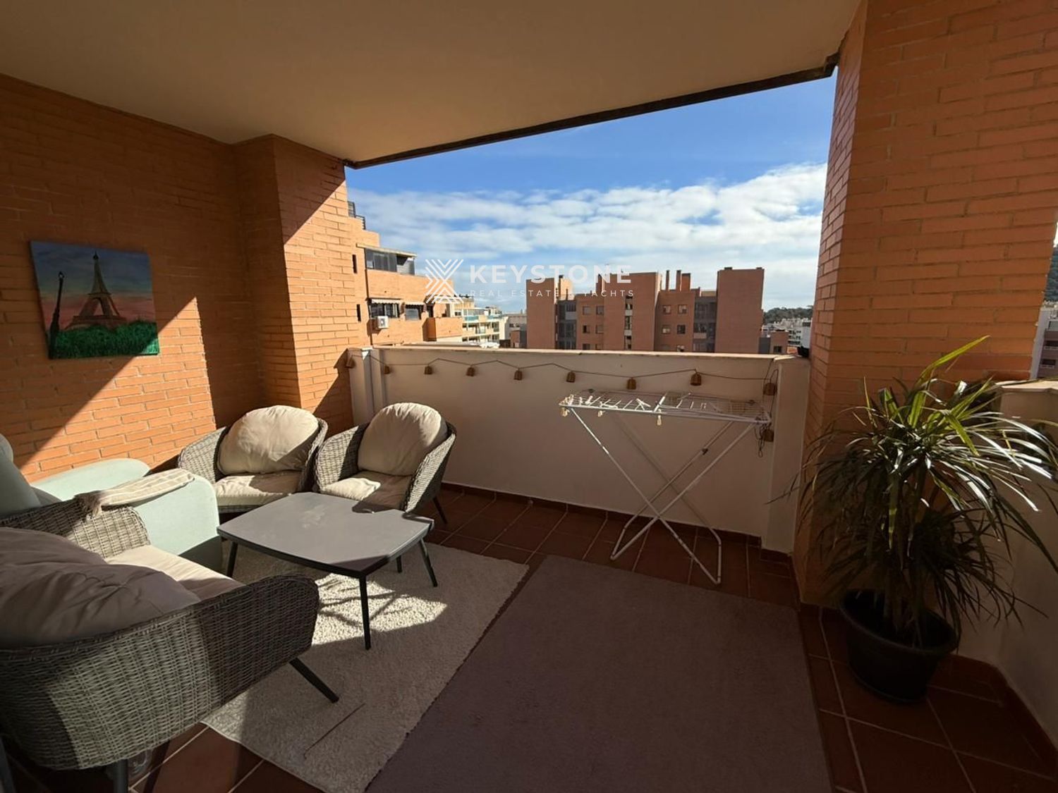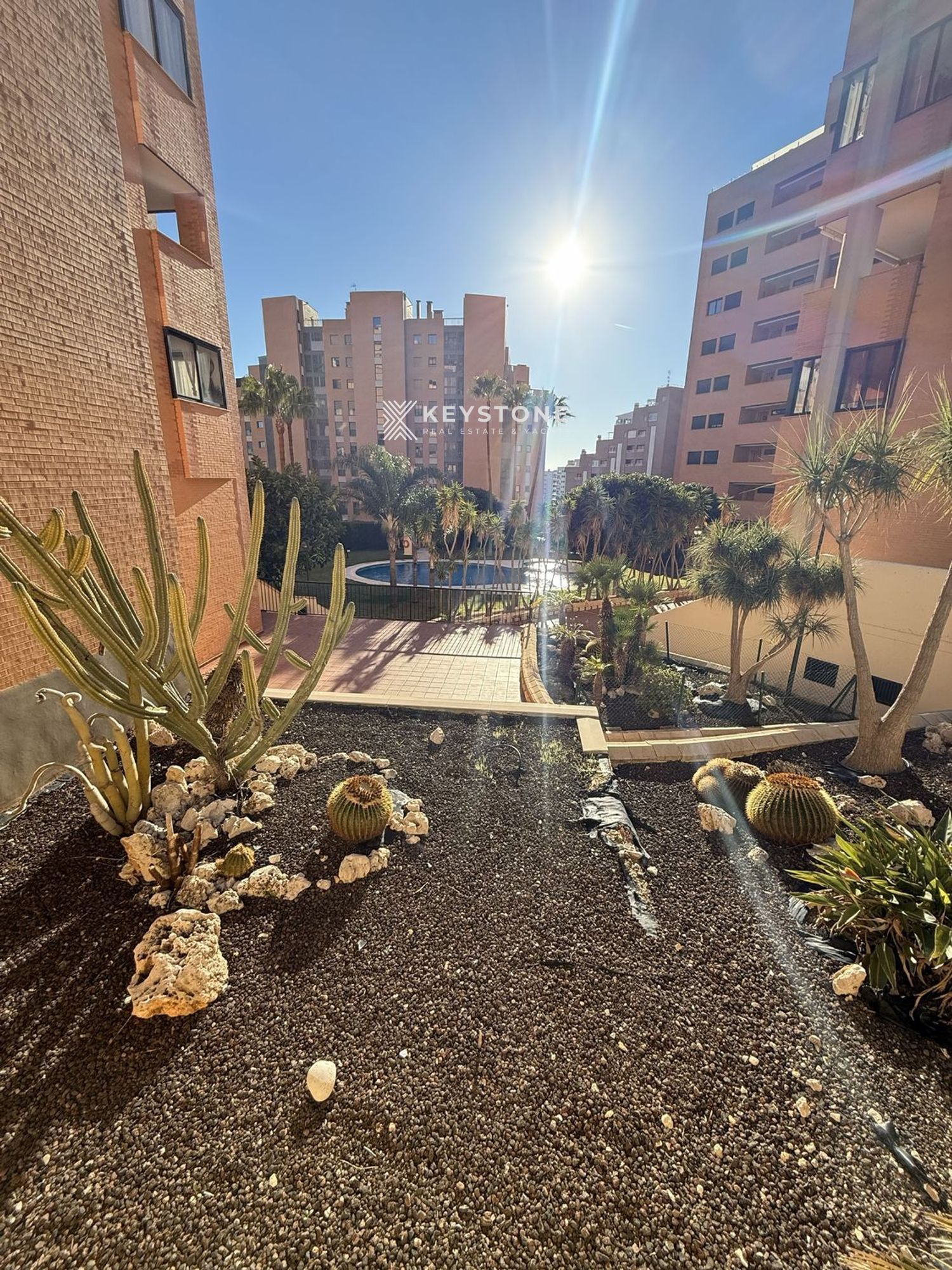 La propiedad cuenta con un dormitorio, un amplio salón con salida a balcón, una gran cocina independiente totalmente equipada con ventana abierta al salón, un práctico trastero interior con lavadora y espacio para secado de ropa, y un cuarto de baño completo con bañera y ventana. Según escritura, dispone de 94 m² construidos y 64 m² útiles. Desde el balcón se disfrutan vistas abiertas a la piscina, las montañas y la zona de Cala de Finestrat. Todas las estancias son exteriores y muy luminosas. La vivienda dispone de aire acondicionado centralizado frío/calor de reciente instalación. Incluye una amplia plaza de aparcamiento en garaje subterráneo y un espacioso trastero seco junto a la plaza. El edificio Alitana 3 está muy bien cuidado, con zonas verdes, piscina comunitaria y dos ascensores. Ubicación tranquila, con la playa de Cala de Finestrat a 10 minutos a pie.