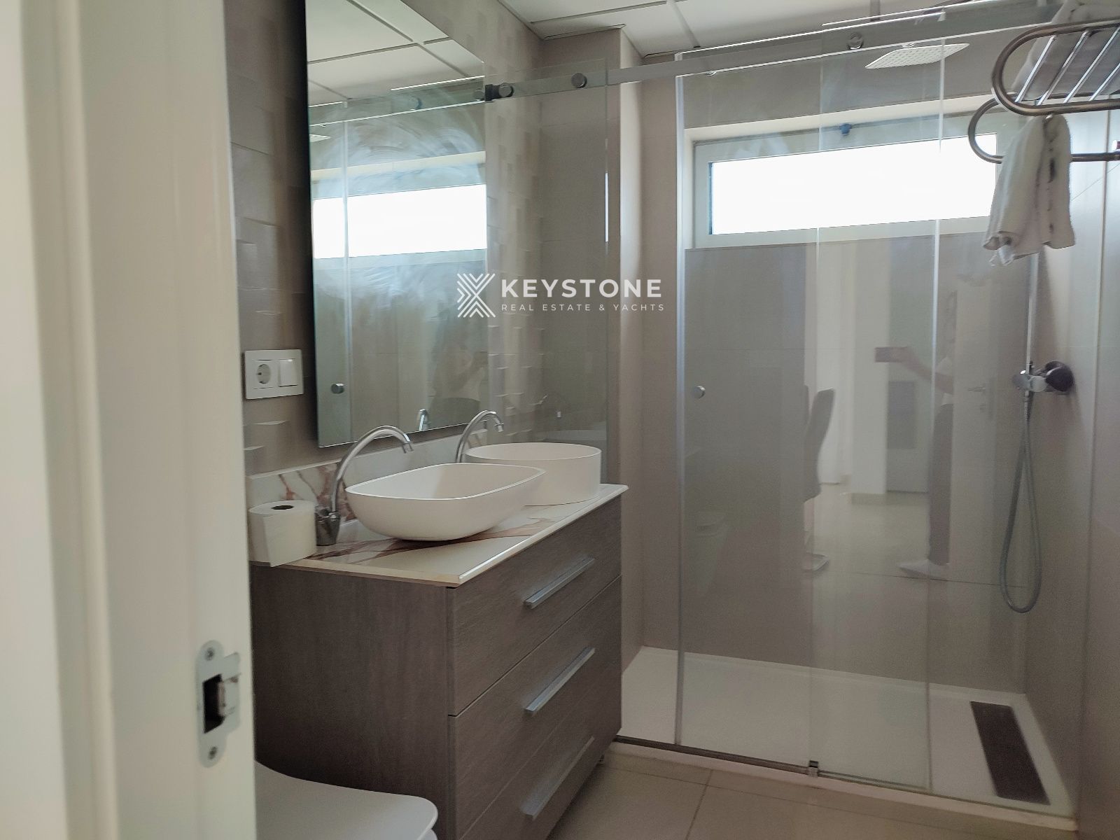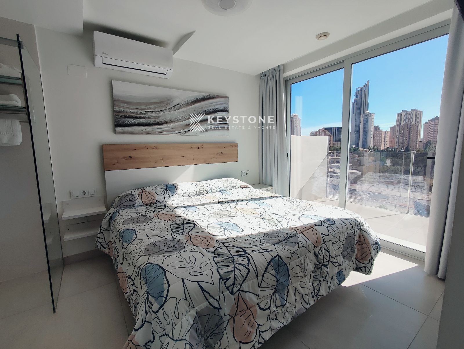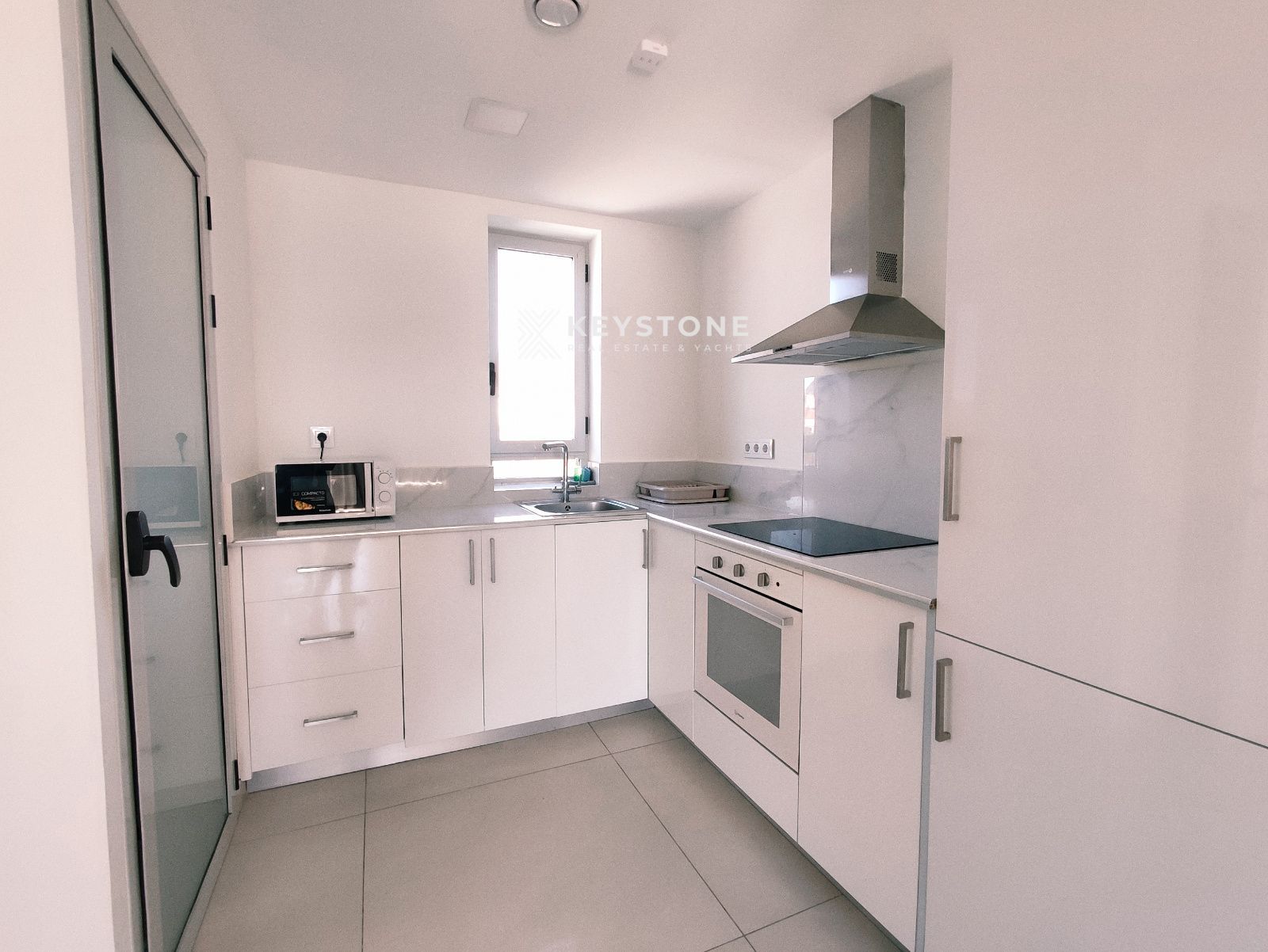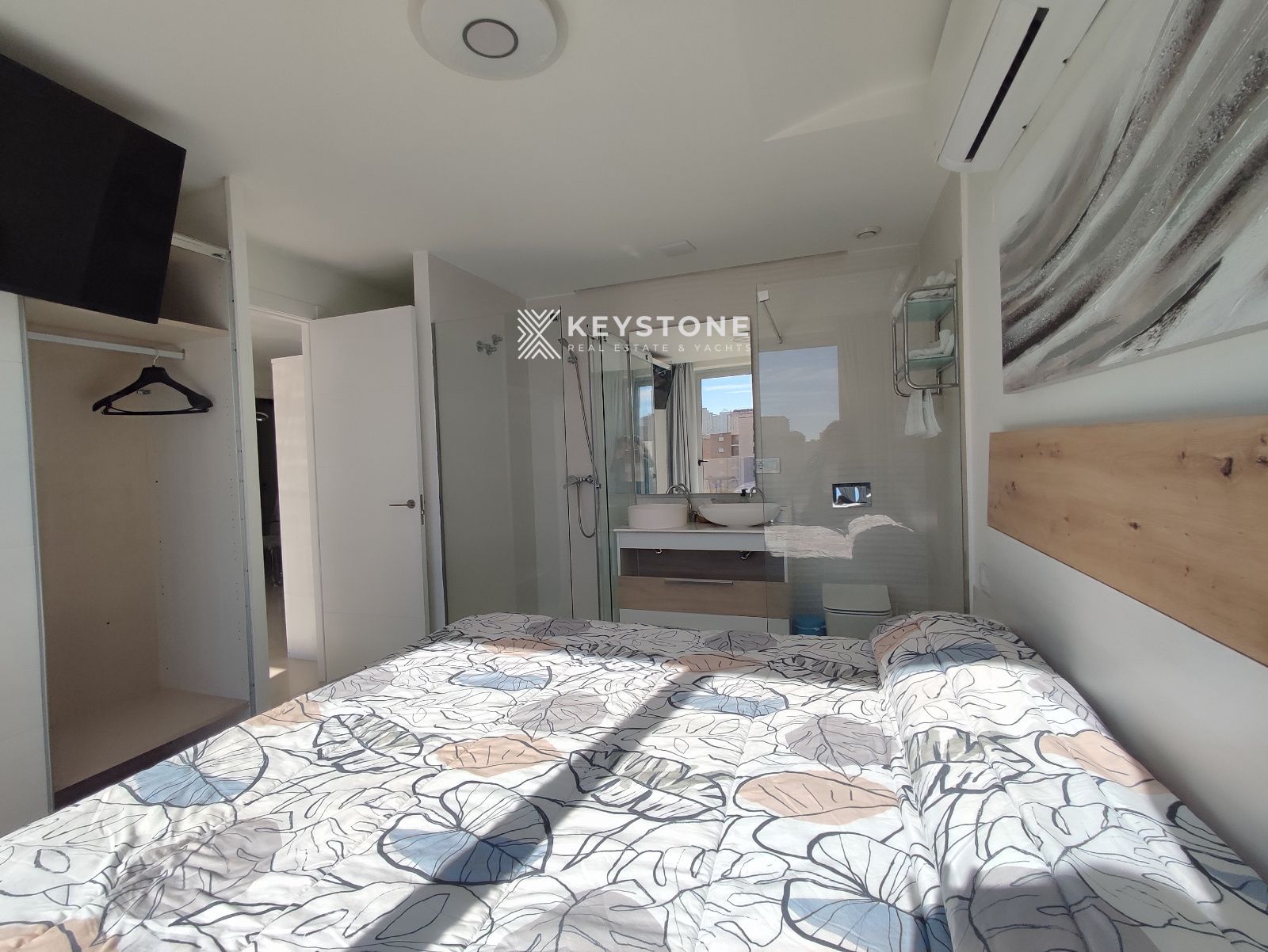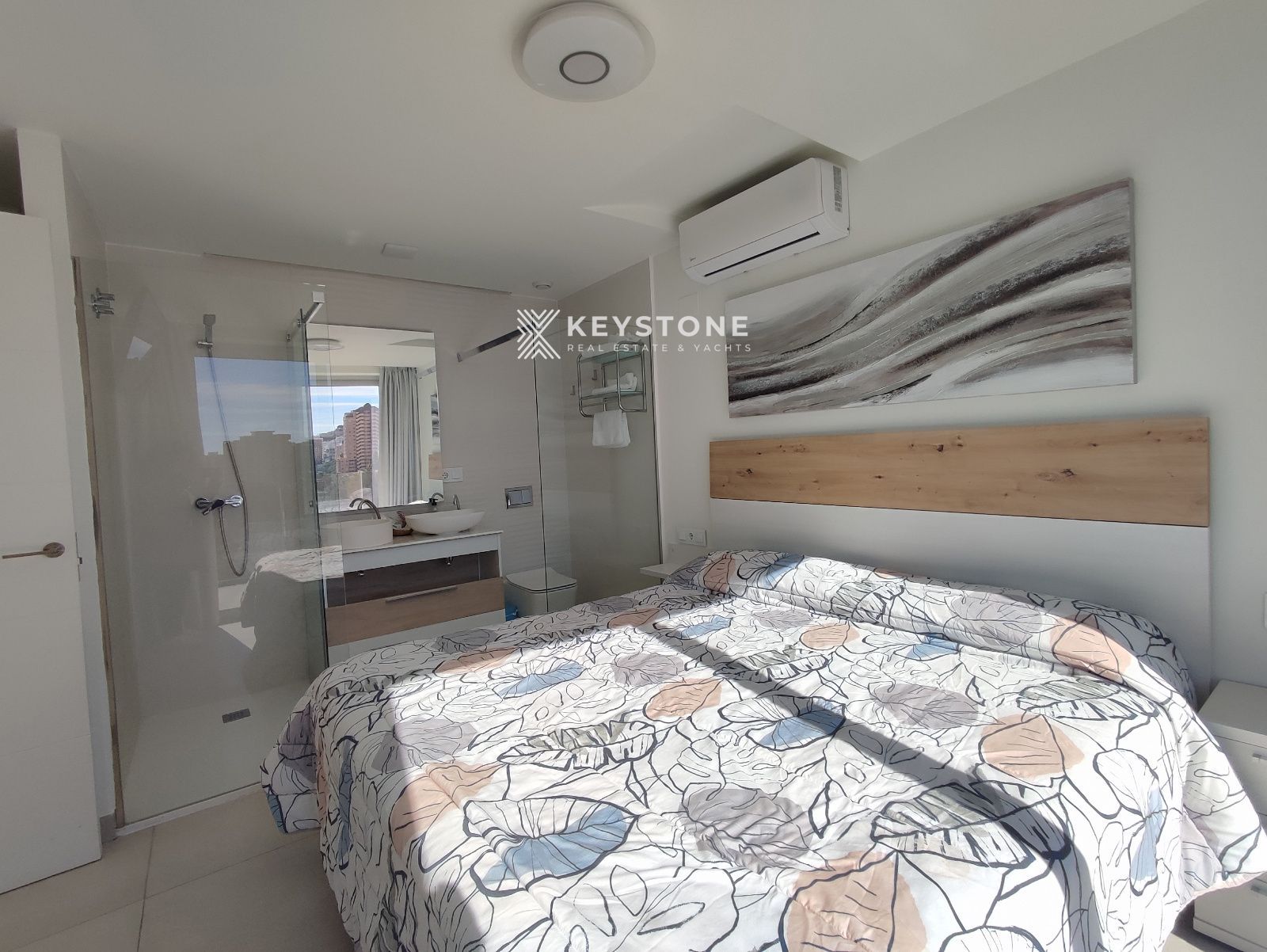 La vivienda ofrece una distribución diáfana y funcional con cocina abierta conectada al salón-comedor, creando un espacio amplio, cómodo y muy luminoso. Dispone de dos dormitorios y dos baños completos, uno de ellos en suite. El dormitorio principal cuenta con grandes ventanales que aportan luz natural y un ambiente contemporáneo y elegante.