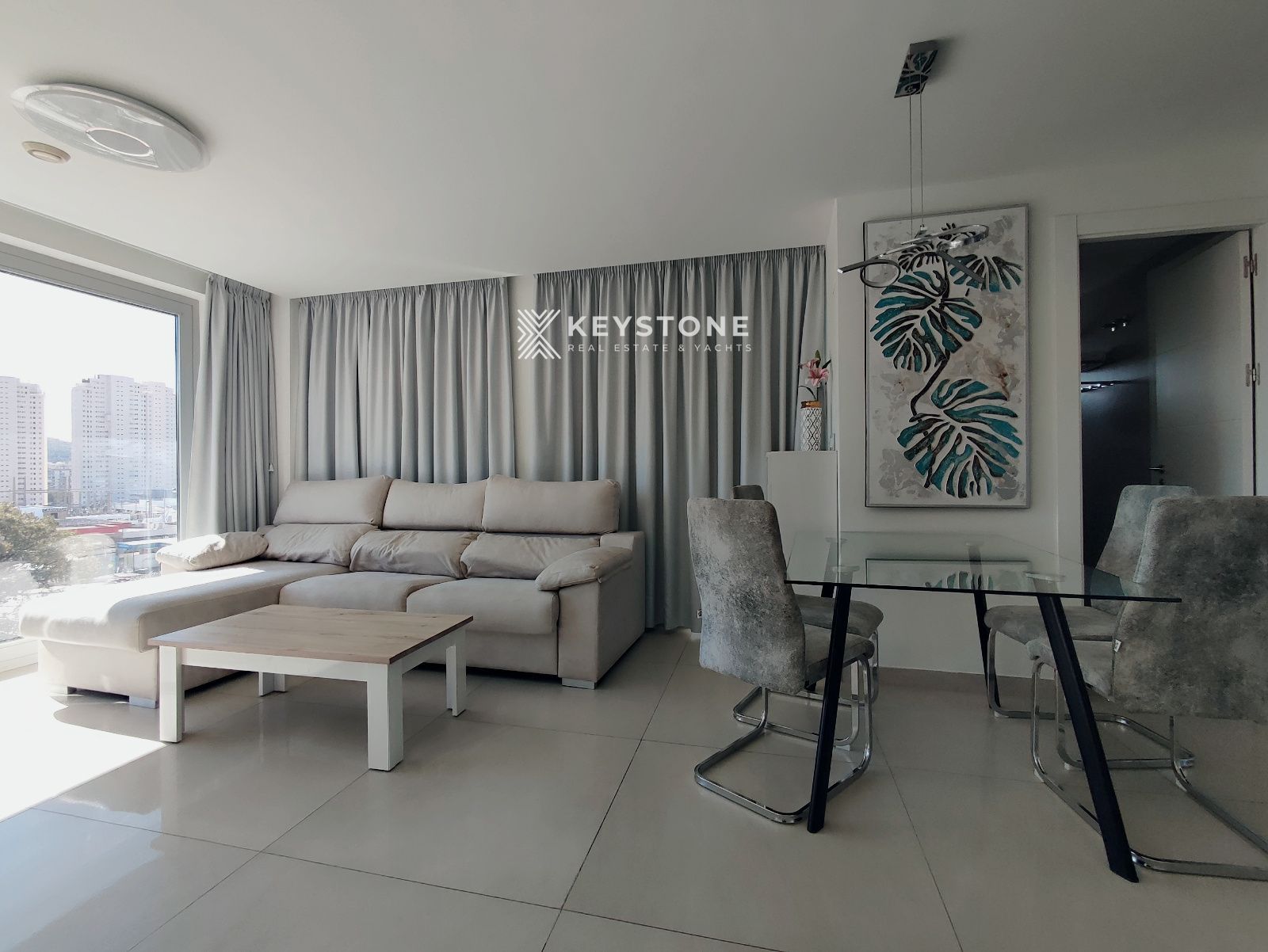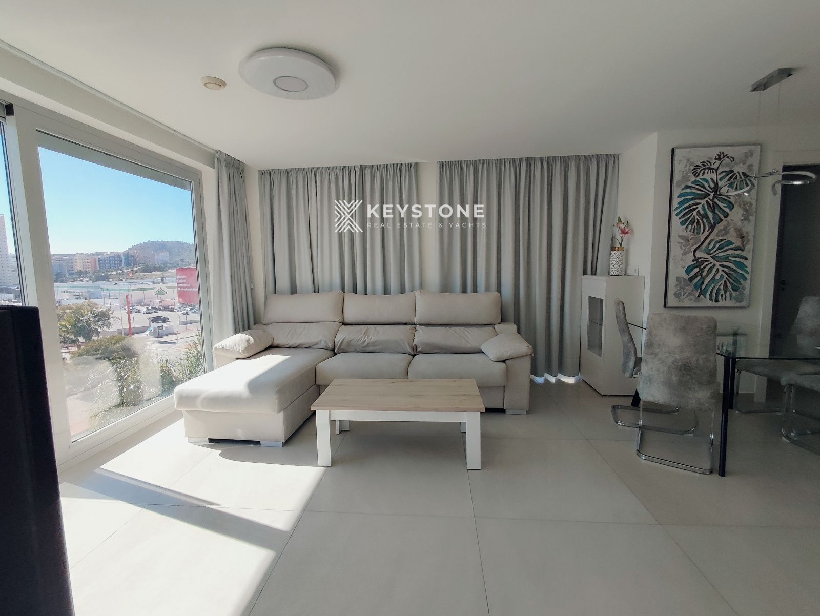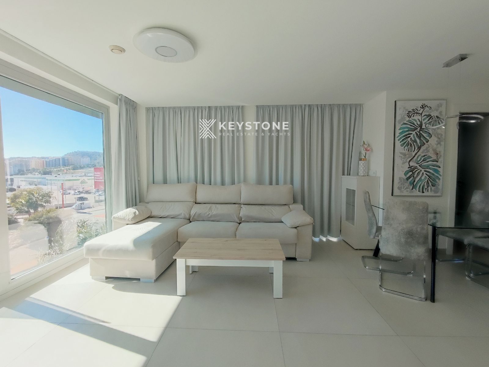 Precioso y luminoso apartamento de 97 m² situado en la tercera planta de una urbanización moderna y tranquila en Cala Finestrat, junto al centro comercial La Marina y rodeado de todos los servicios esenciales.