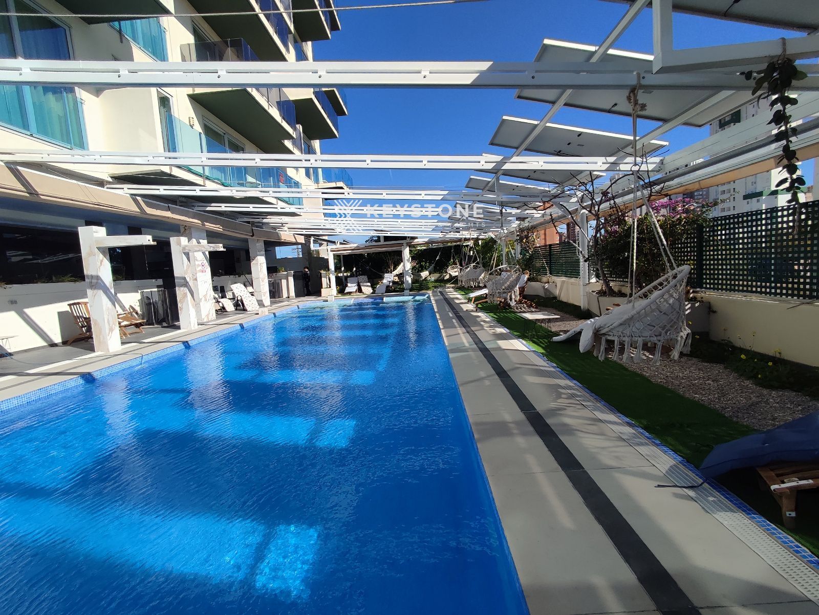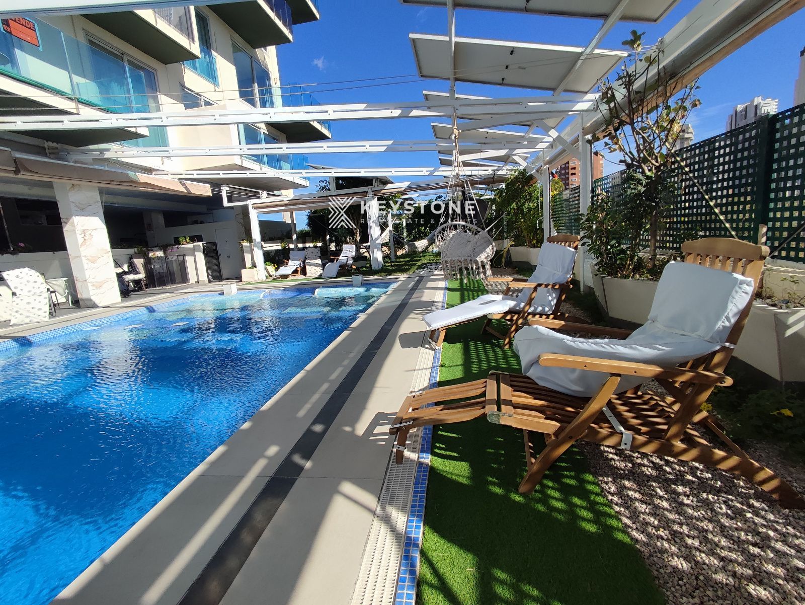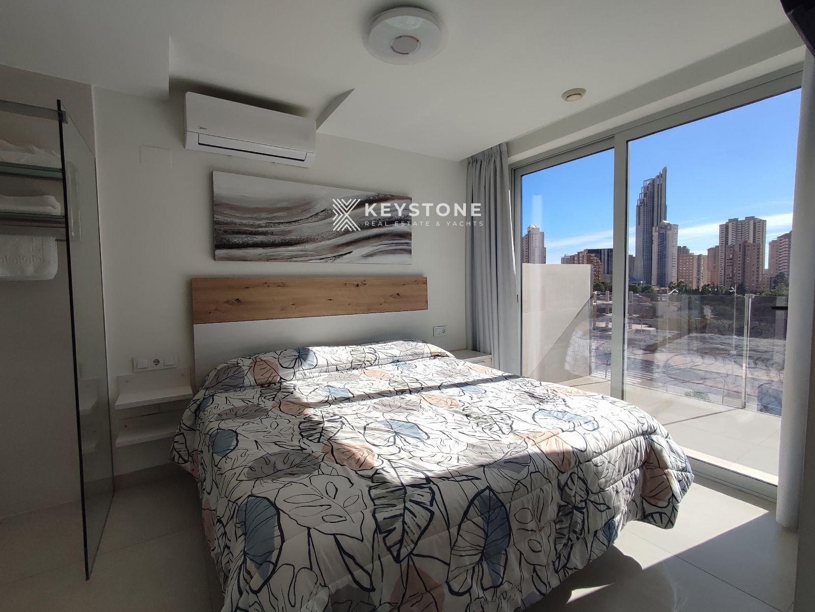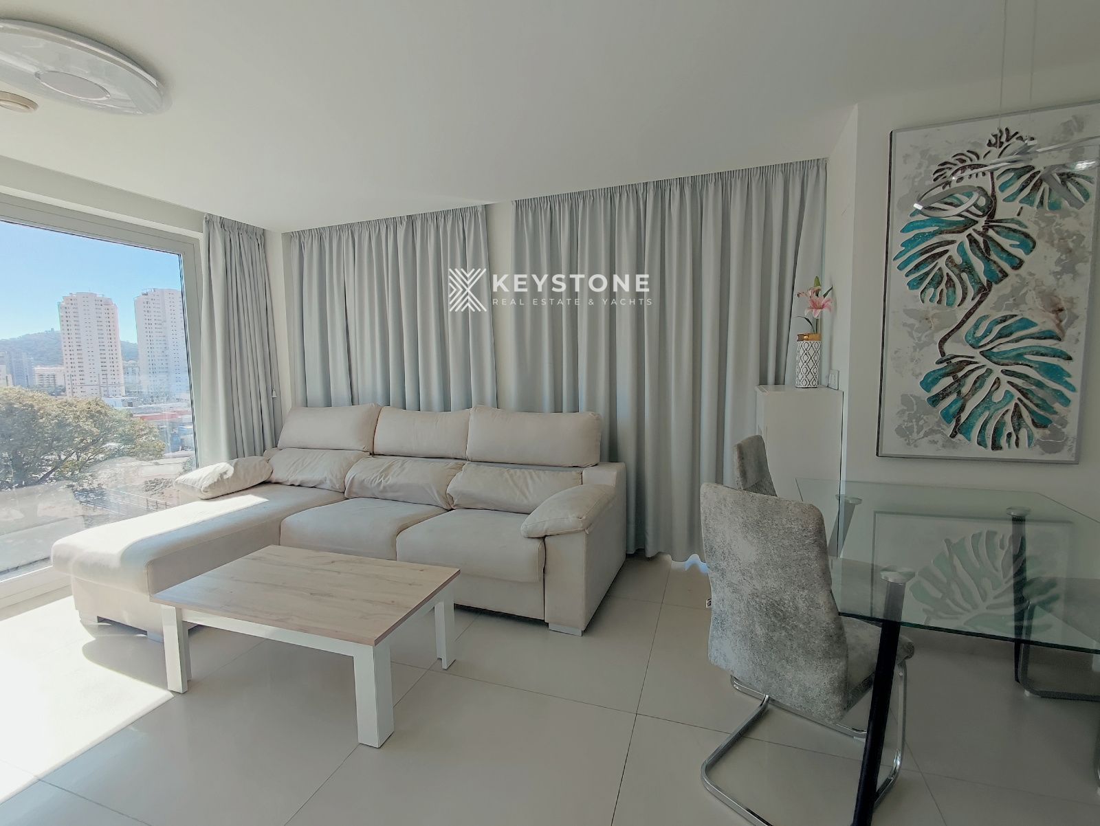 Precioso y luminoso apartamento de 97 m² situado en la tercera planta de una urbanización moderna y tranquila en Cala Finestrat, junto al centro comercial La Marina y rodeado de todos los servicios esenciales.