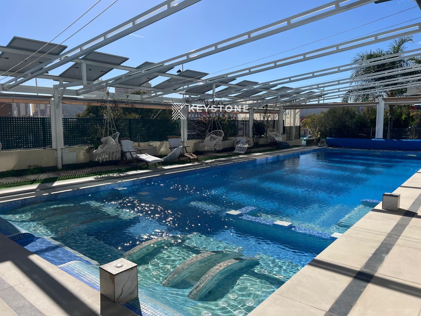 La vivienda está equipada con aire acondicionado, armarios empotrados y plaza de garaje incluida. El residencial tipo resort incluye piscina exterior, spa con piscina climatizada, sauna, jacuzzi y jardines. A 15 min de la playa y 8 del TRAM. Ideal como inversión o residencia.