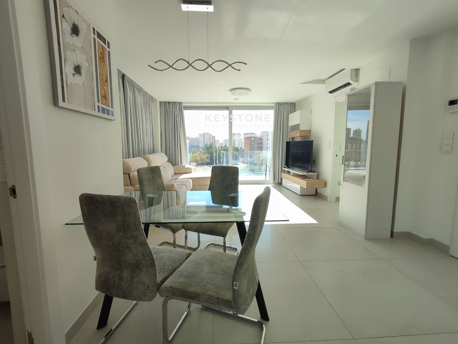 Este amplio apartamento de 97 m² está ubicado en una exclusiva urbanización de Cala Finestrat, junto al centro comercial La Marina. Ofrece un diseño moderno con cocina abierta, 2 dormitorios, 2 baños (uno en suite) y una gran terraza de 23,87 m² orientada al sur y oeste.